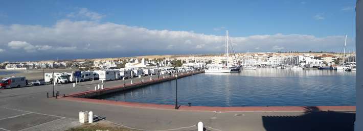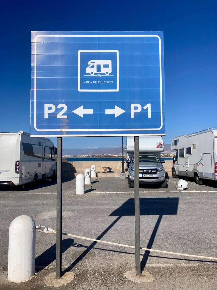 Suivre les panneaux indiquant la barrière - s'inscrire dans la tour - toilettes et douches au restaurant Nautica (demander la clé lors de l'inscription) - supermarché Mercadona 450m - alternative possible au code site 9439 - centre 500m