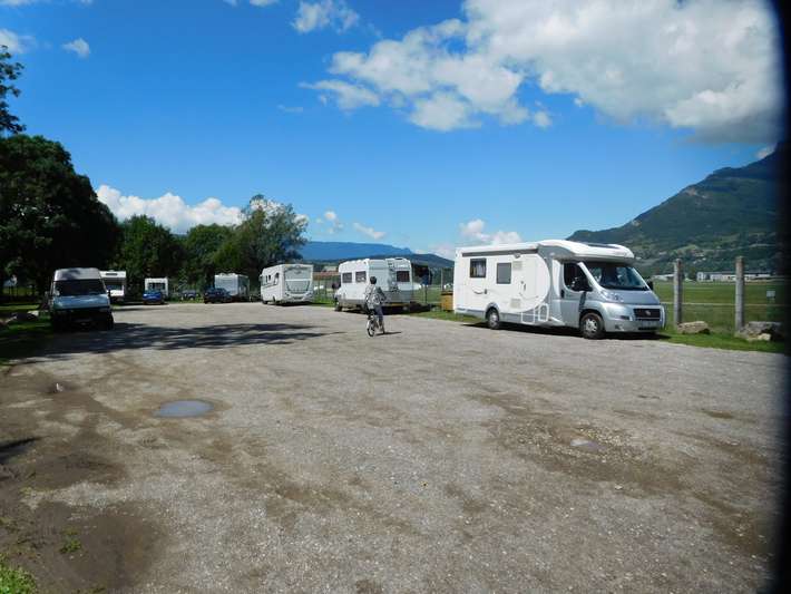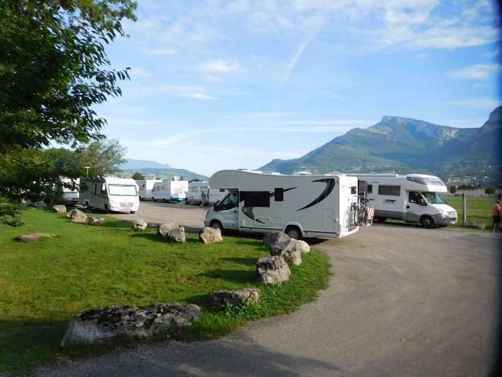 emplacement RV libre le long d'un petit terrain d'aviation pour les planeurs et les avions d'un moteur. Placez environ 14 campeurs. À la périphérie du village de Challes-les-Eaux et à 2 km. la distance de Chambéry. Les transports en commun pour lieu de camping-car.