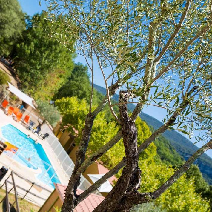 Situé sur une colline ancienne au coeur de l'Ardèche, à proximité du Pont d'Arc - magnifique vue sur l'entrée des Gorges de l'Ardèche - camping en terrasses.
