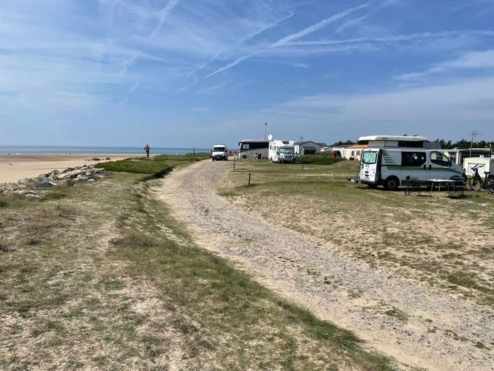 Camping avec principalement des maisons - vue plage et mer - petite aire de jeux - service pain - supermarchés et centre à 2,5 km