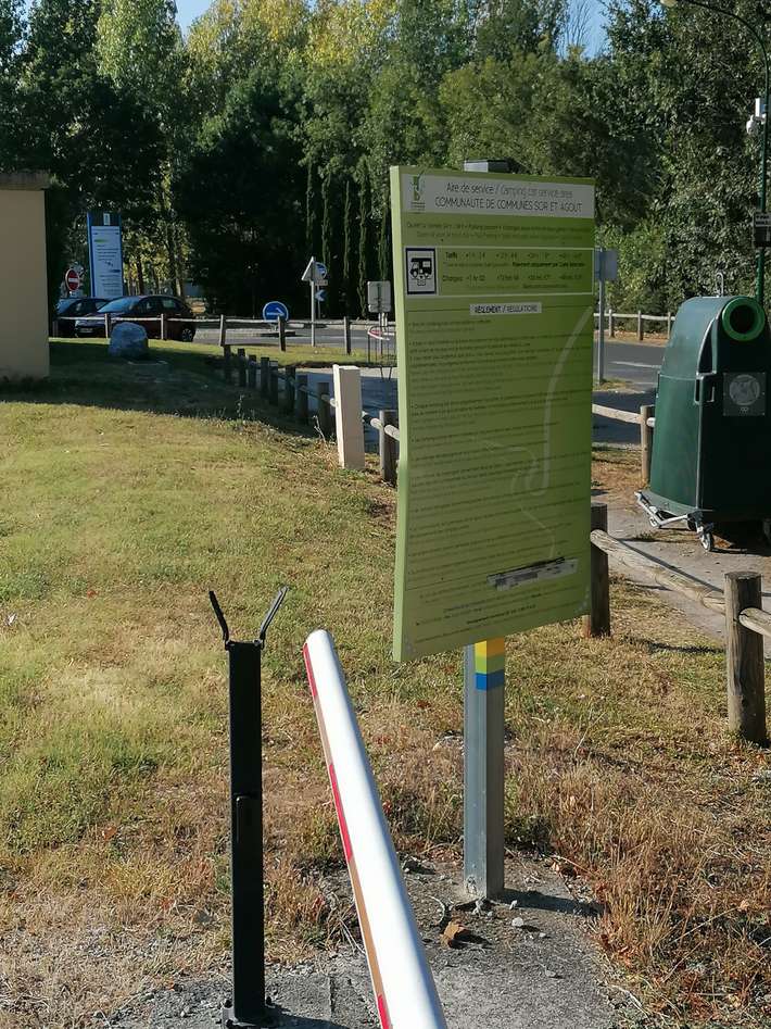 Place de campeur à la zone de loisirs au lac. Carte journalière 24h / 7 € - 48h / 14 € avec carte bancaire. La taxe de séjour est incluse.