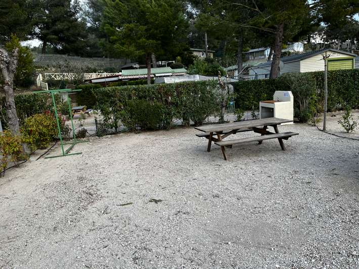 Un beau camping simple avec quelques limitations. L'endroit est principalement constitué de chalets (mobil-homes) et de caravanes permanentes. Les emplacements pour caravanes / camping-cars / tentes sont tous très plats et en gravier. Les pierres sont parfois un peu pointues, mais tout est propre et il n'y a pas de sable qui vole. Il y a de l'électricité, des cordes à linge, une alimentation en eau et un double évier avec de l'eau potable froide à chaque endroit. Pour rincer, nous avons apporté 10 litres d’eau chaude des douches. Tous les endroits ne sont pas équivalents en termes de soleil, d'ombre, de bruit et de générosité. Mais ils ont tous en commun d'être clairement répartis. Nous sommes passés au numéro 25 et sommes très satisfaits: à l'ombre du matin, à midi, un grand arbre jette également des ombres et dans l'après-midi ou le soir, il fait encore soleil. Tous ceux qui sont sensibles au bruit devraient regarder un peu plus loin: quelque part en face de nous: la pizzeria La Source. Le week-end, il ya toujours un karaoké (jusqu’à la mi-septembre), ce qui signifie une musique amusante jusqu’à environ 23/23h30. Des croissants et des baguettes peuvent être commandés à la réception, la boulangerie la plus proche est à La Couronne, à environ 10 minutes en vélo, il y a le marché Mi et Sa, il y a aussi un petit supermarché et divers magasins, boucher, etc. La gare est reliée à Marseille toutes les heures, le trajet dure 45 minutes et en vaut la peine. De la gare, une ligne de bus mène également à la place, mais la coordination est mauvaise, il est préférable de marcher (25 min) ou de prendre le vélo.Sur la place, les installations sanitaires sont simples et propres: 3 douches, 3 lavabos et seulement m / w 2 toilettes, qui sont également juste à l'entrée. Ce n'est pas pour tout le monde. La disposition est un peu inhabituelle: à la 24ème place (Wohnhaus der Platzmeister), il y a un petit puits dans le réseau d'égouts à gauche. Là dedans, avec le WC chimie et rincer en face avec le tuyau. Il est préférable de laisser entrer… Les eaux grises avant ou tout simplement par seau dans l'évier. La plage est à 5 minutes à pied. La baie est magnifique: plage de sable fin, eau peu profonde, rochers à droite et à gauche, peu d'ombre et toilettes publiques très propres. En été, il y a des snacks, etc. à acheter. Nous sommes ici depuis une semaine et nous restons toujours - trop beaux, même en automne. Maintenant mi-septembre. mais nous payons quand même 25 euros pour la place avec WoMo plus 4,50 électricité / jour, un peu trop cher ...