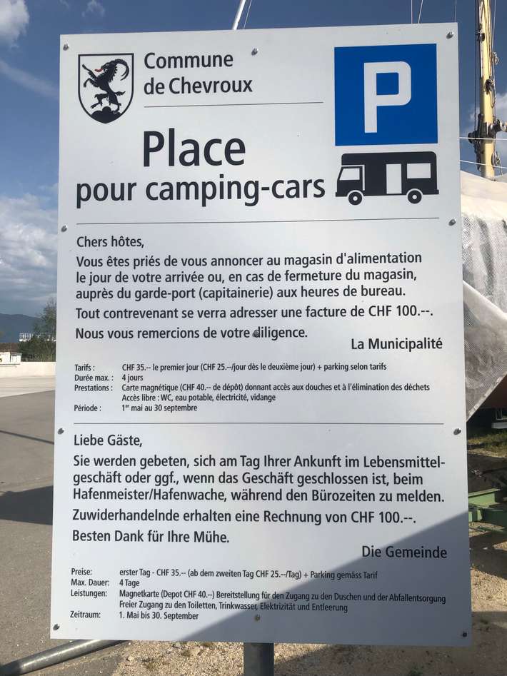 parking au port - Avenchi 10km - payer au magasin