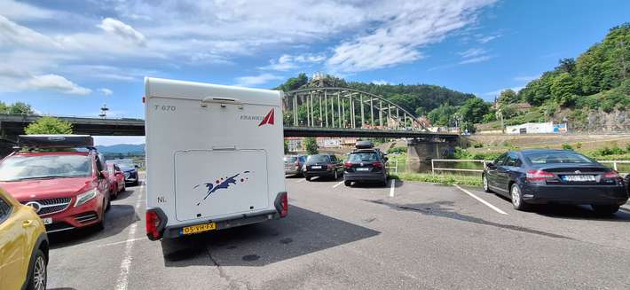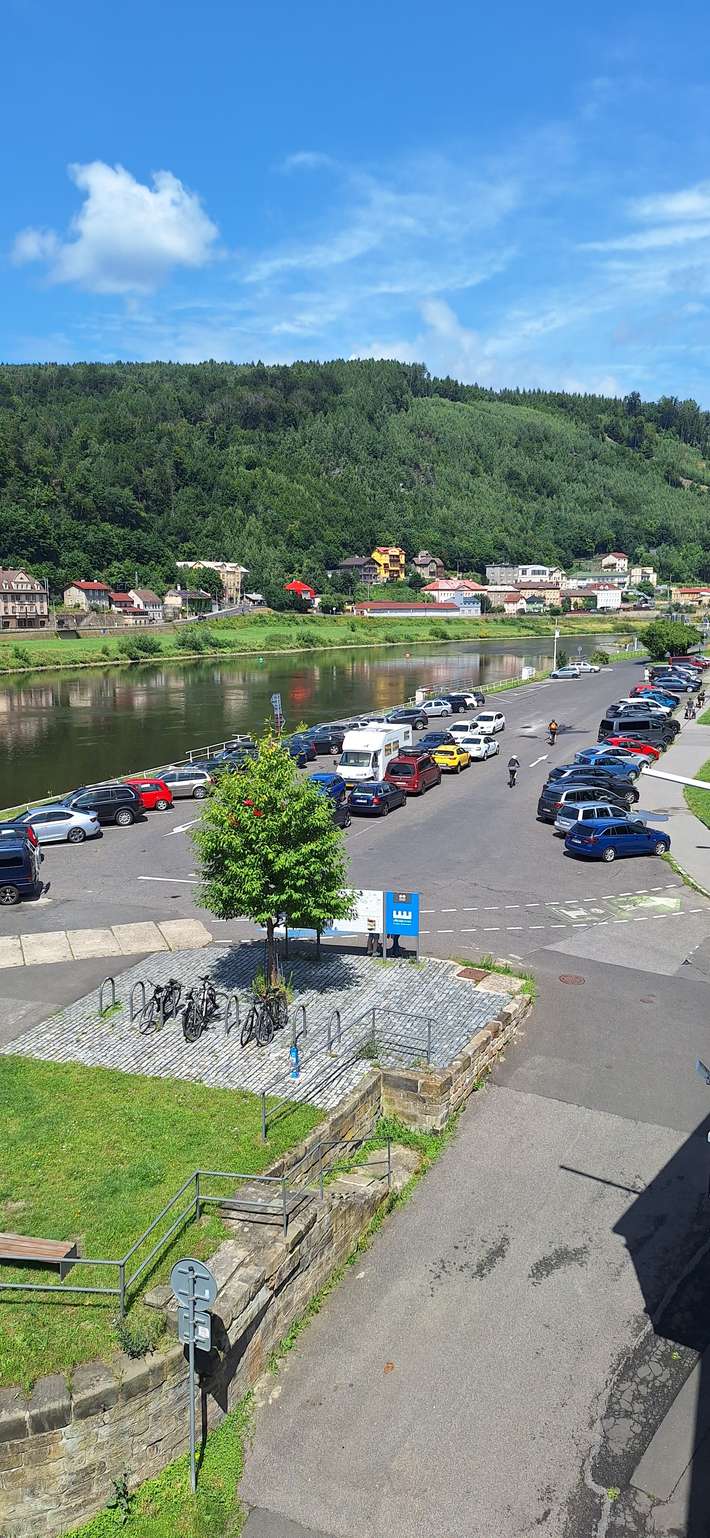 parking entre le fleuve Elbe et appartements résidentiels - à proximité du bureau de la bibliothèque et touristique - toilettes publiques