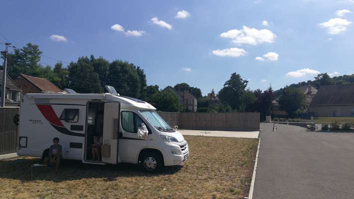 Posto camper nel parco del municipio - vista sul castello di Conde 150 m - panetteria, ristorante e supermercato 50 m - centro 200 m