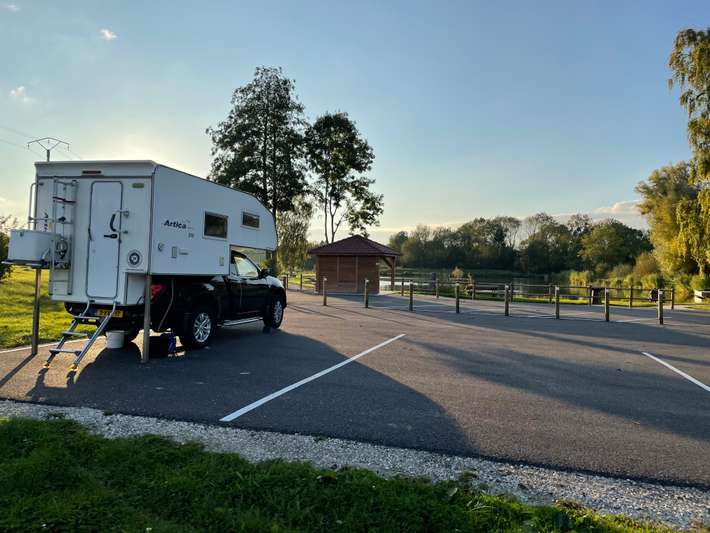 Nuovissima area camper. Con possibile notte libera, servizi igienici, stagno, barbecue ...