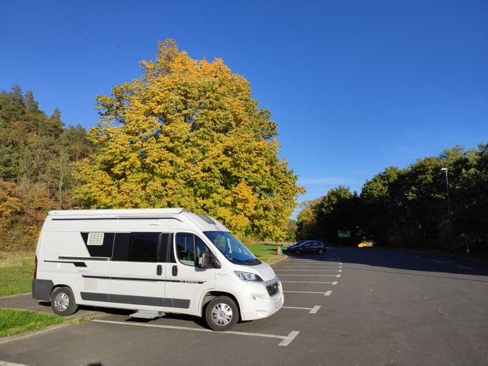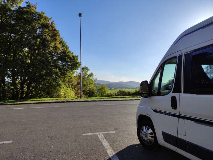 Un parcheggio sentiero nei pressi di un ristorante turistico, senza VE. Posti a sedere disponibili bella vista, la sera, molto tranquilla in un vicolo cieco.