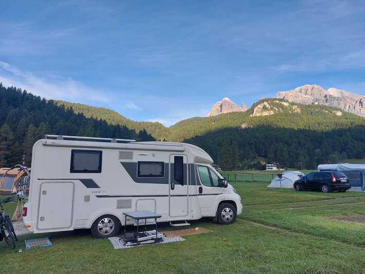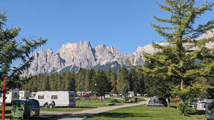 dal campeggio si ha una splendida vista sulle alte montagne intorno a Cortina - centro 3 km