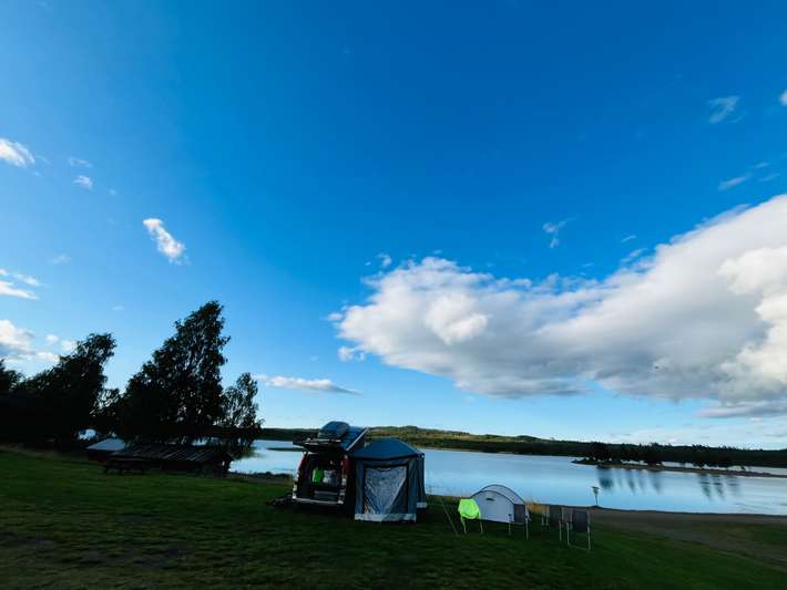 situato sul lago Särnsjön - campeggio a terrazze - terreni in pendenza - posti delimitati - vicino spiaggia di sabbia - servizio di pane - ristorante - campeggio sport invernali - 54 collegamenti di energia - centro 1,2 km