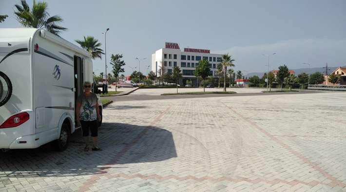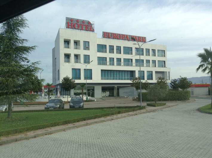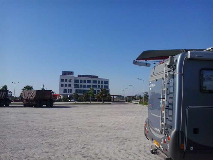 parking bij EuroPark Hotel - restaurant - langs de nieuwe autoweg 20km ten noorden van Tirana - staat niet als camperplaats aangegeven