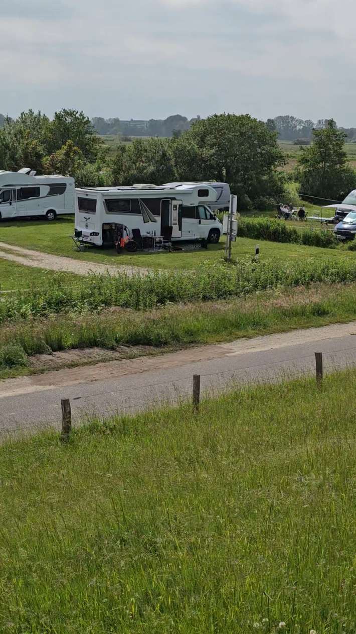 rustig gelegen aan de dijk - toeslag voor campers langer dan 8m - verzorging zonder overnachting € 3 - strand over de dijk 100m - ligweide - Imbiss - centrum 3km