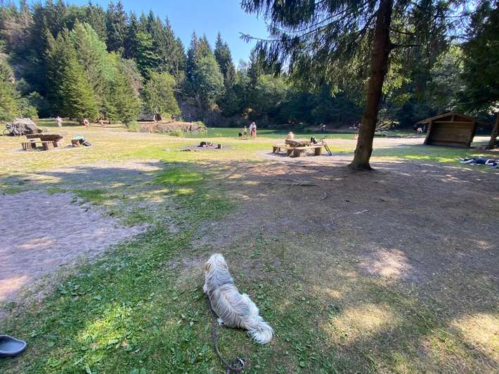 Ser rustig in het bos op een klein bergmeer. Operators zijn erg aardig. Absolute vrede op de top van het Thüringer Woud. Rennsteig. 800 m boven zeeniveau. N. N pure natuur. Overnachting 12 Euro inclusief toiletinkt.