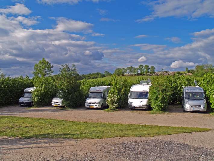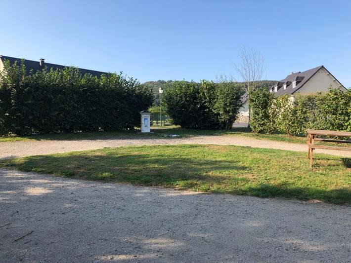 parking du stade - rustige plaats aan het begin van het dorp vanuit Riom es Montagnes aan een forellenbeek - dichtbij Auberge - bakker komt 3x/week langs