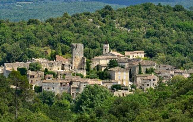 Locatie aan de D312 - gebruik GPS-coordinaten - (nog) zonder schaduw - Montclus behoort tot de "Mooiste Dorpen van Frankrijk" - centrum 1km