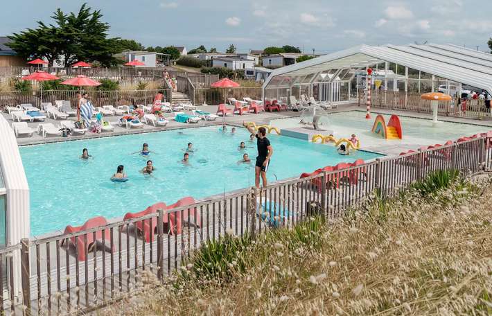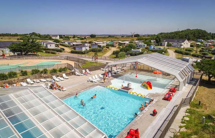 Viersterrencamping in de Loire-Atlantique bij Batz-sur-Mer, op 100 meter van het strand, met waterpark, regelmatig kinderanimatie, kampeerplaatsen, verhuur, canvas bungalows, stacaravans en lodges.