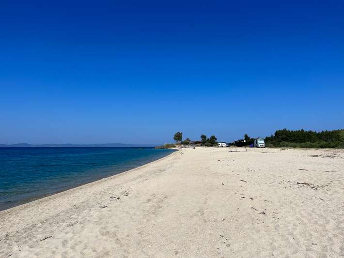 breed zandstrand, gratis toegang (in een seizoen waarschijnlijk dichtbevolkte), strandbar.