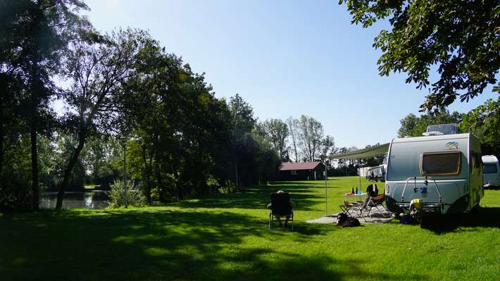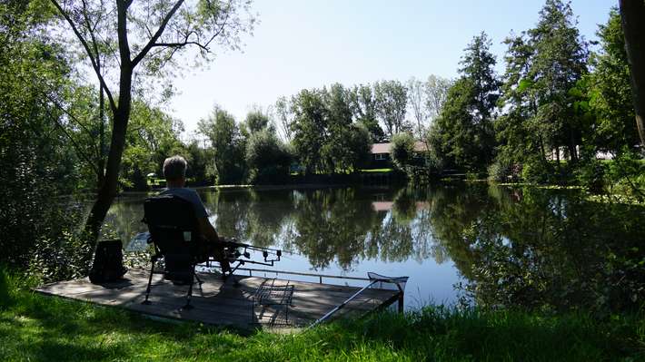 Rustige camper- en caravanplaats in Zeeland (Noord-Brabant), Vlak bij natuurgebied De Maashorst. Ruime plekken direct aan onze visvijver met 10A stroom en uitzicht op het water.