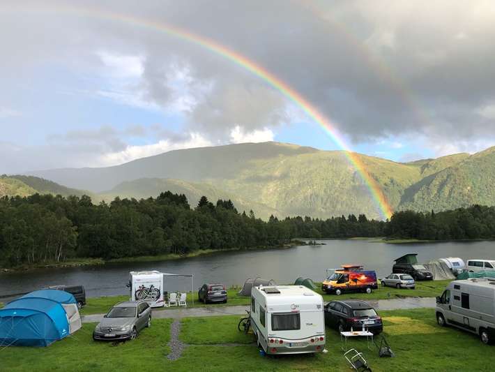 gelegen aan meer - busverbinding naar Bergen voor de deur - campingwinkel - druk in hoogseizoen - kanoverhuur - winkels/centrum 1,5km