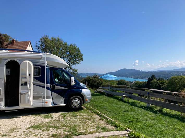Parking bij pension - uitzicht over de Wörthersee - centrum 2,5km