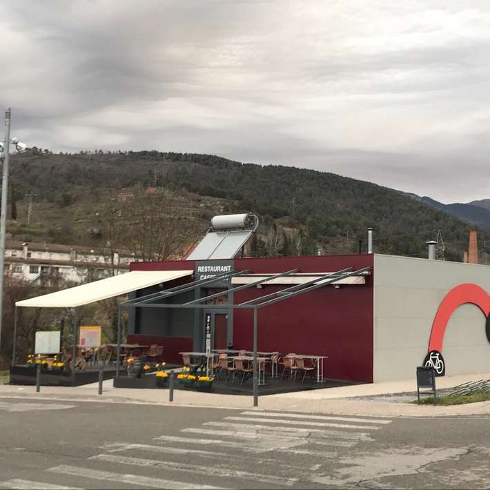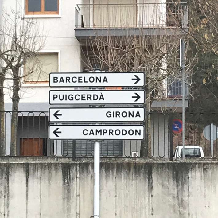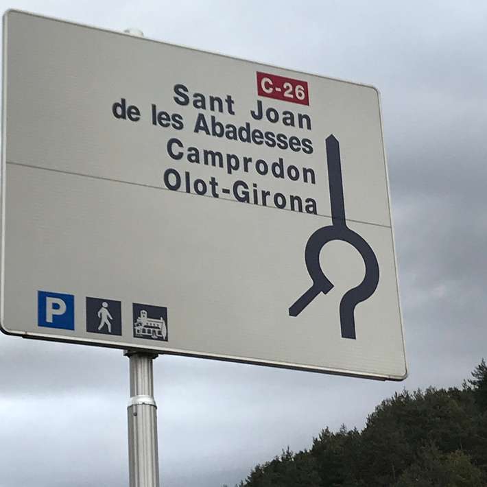 bewegwijzering politie volgen - locatie naast politiebureau - restaurant - winkel 500m - klooster van Santa Maria de Ripoll - centrum 250m
