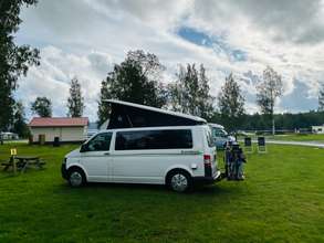 Heerlijke om hier met de camper te staan. Op grasstrook met uitzicht op het meer. Supervriendelijke ontvangst. 350SEK met 2 personen, camper en elektra. Alles is aanwezig, schoon en met pad toegankelijk. Ben je een slechte slaper of stoor je je snel aan geluid dan niet doen, want je hoort het E4 verkeer. Wij vonden het een heerlijk camping.