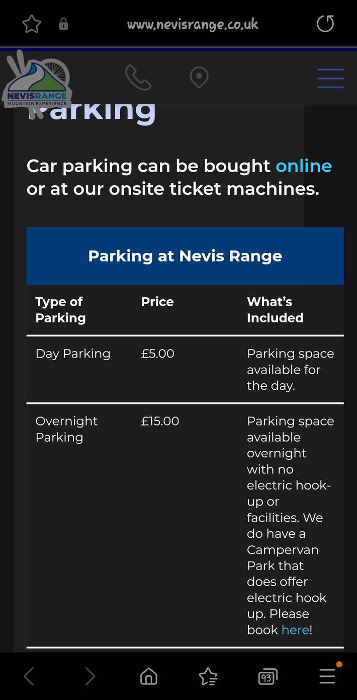 Camperlocatie aan de achterzijde van het bezoekerscentrum bevindt zich een kraan met drinkwater - toiletten en douches beschikbaar tijdens openingstijden centrum 3.5km